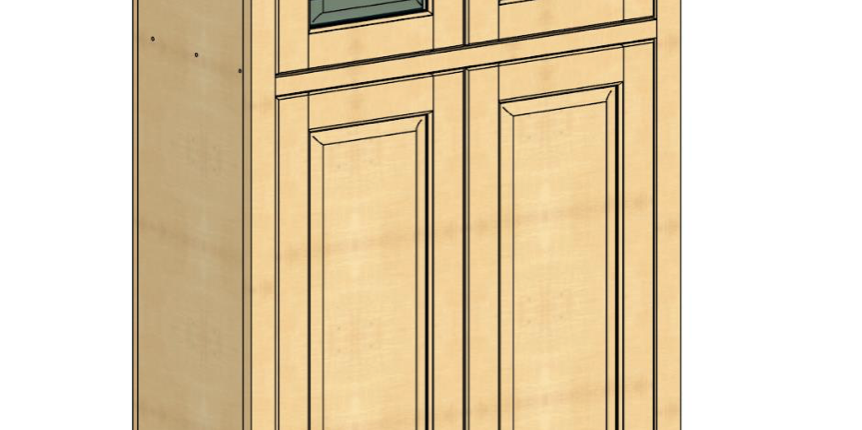 Combining cabinet tools with closet tools opens up a whole new world of opportunities. For some projects, it’s easy to draw part of it as a cabinet, but other parts are more geared towards individual components such as the hutch shown below. The bottom half was drawn with CabWriter cabinet tools, while the top half used CabWriter Closet tools. Just like the cabinet tools, CabWriter Closet can also automatically draw the necessary hinge, drawer slide, and shelf pin holes automatically based on parameter settings, but also introduces a flexible new hole tool that allows you to add or delete any number of holes at any position on any component, including cabinet components.